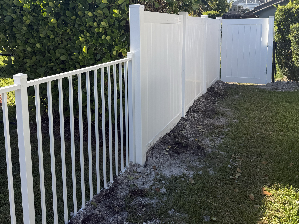 Check out this recent install of a new 4′ white CF12 aluminum fence along with a 6′ PVC tongue & groove style fence installed by Atanda Fence of South Florida, Inc at a residence in the Pembroke Pines, FL area.