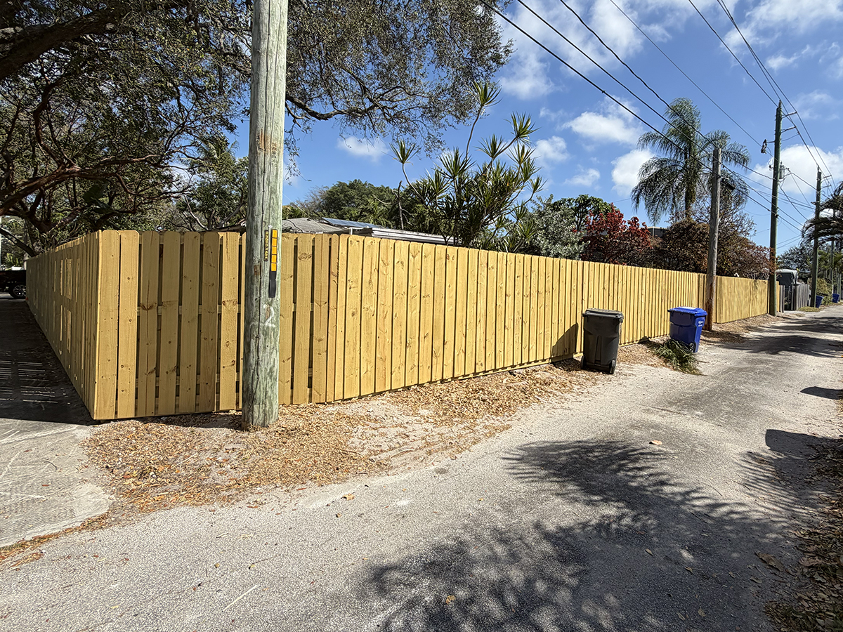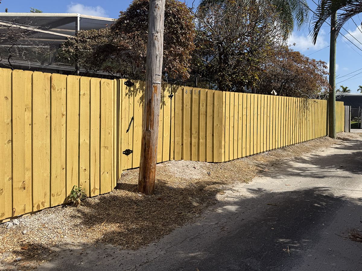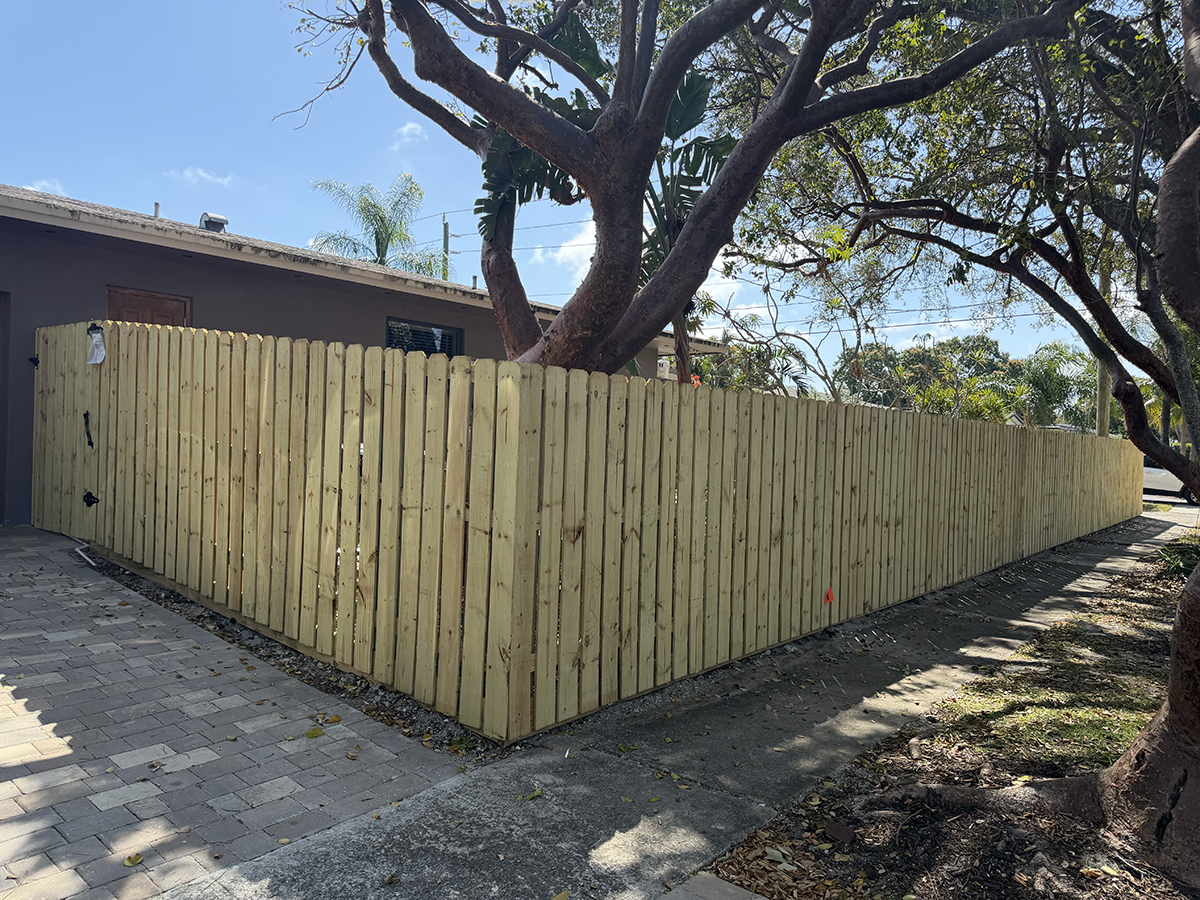Atanda Fence of South Florida, Inc showcasing this recent install of a new shadowbox wood fence and board on board wood fence in Hollywood, FL area.