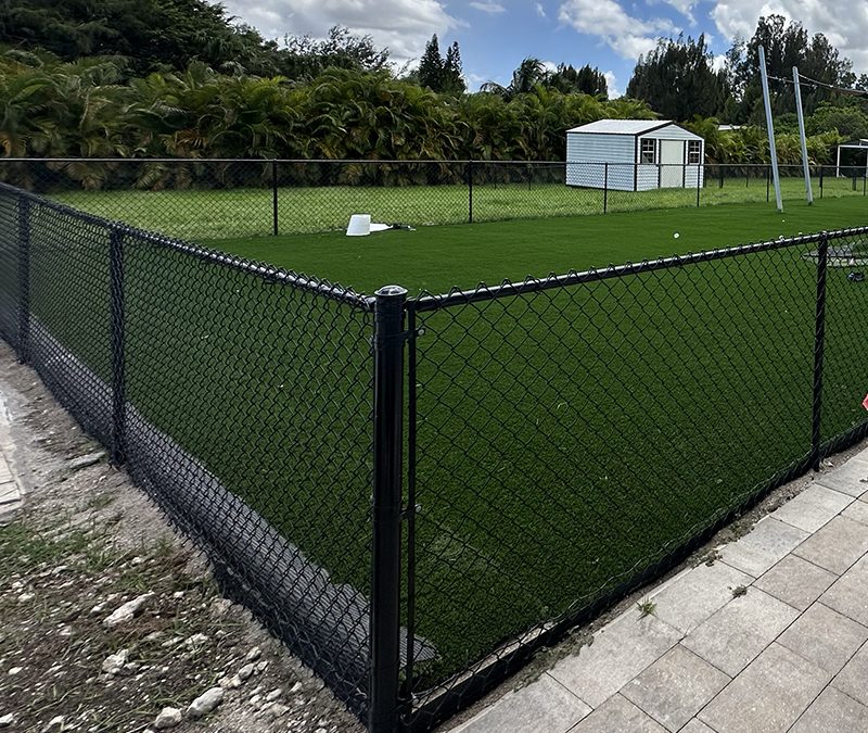 Atanda Fence of South Florida, Inc showcasing this recent install of a new black vinyl chainlink fence in the Southwest Ranches, FL area at a residence.